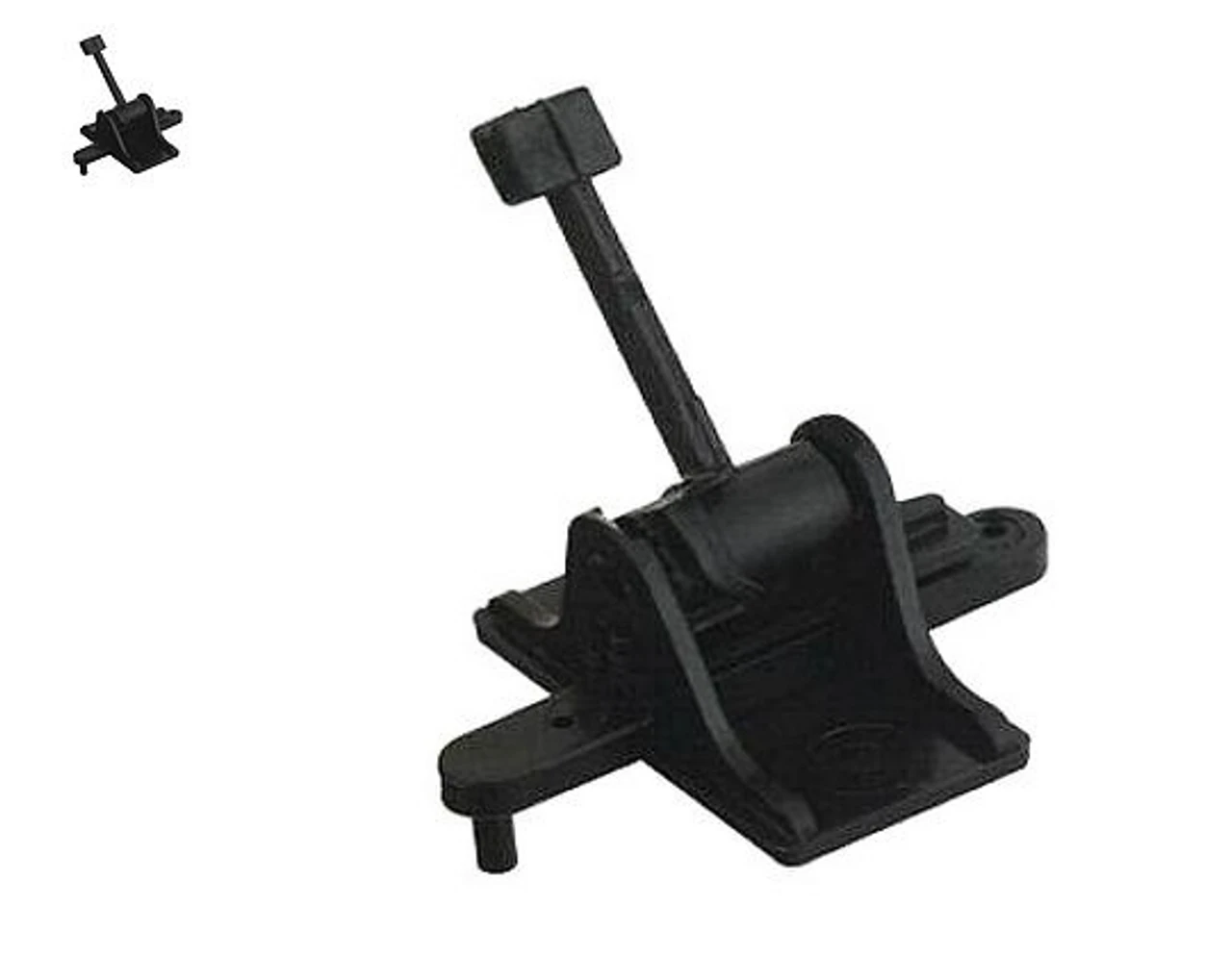 Strong, self-lubricating black Delrin ground throws with external cam for strength and maximum throw. Molded on pin for direct mounting. Â All 100 series (Rigid) stands require modelers to fabricate a spring connecting link between the stand and the turnout. Features .135″ Travel Molded of strong, self-lubricating black delrin. External cam provides maximum life and travel. Cam design provides lock on both ends of the throw. Direct connection to the turnout through a pin on the slide bar. Detent to assist in holding the handle horizontal.