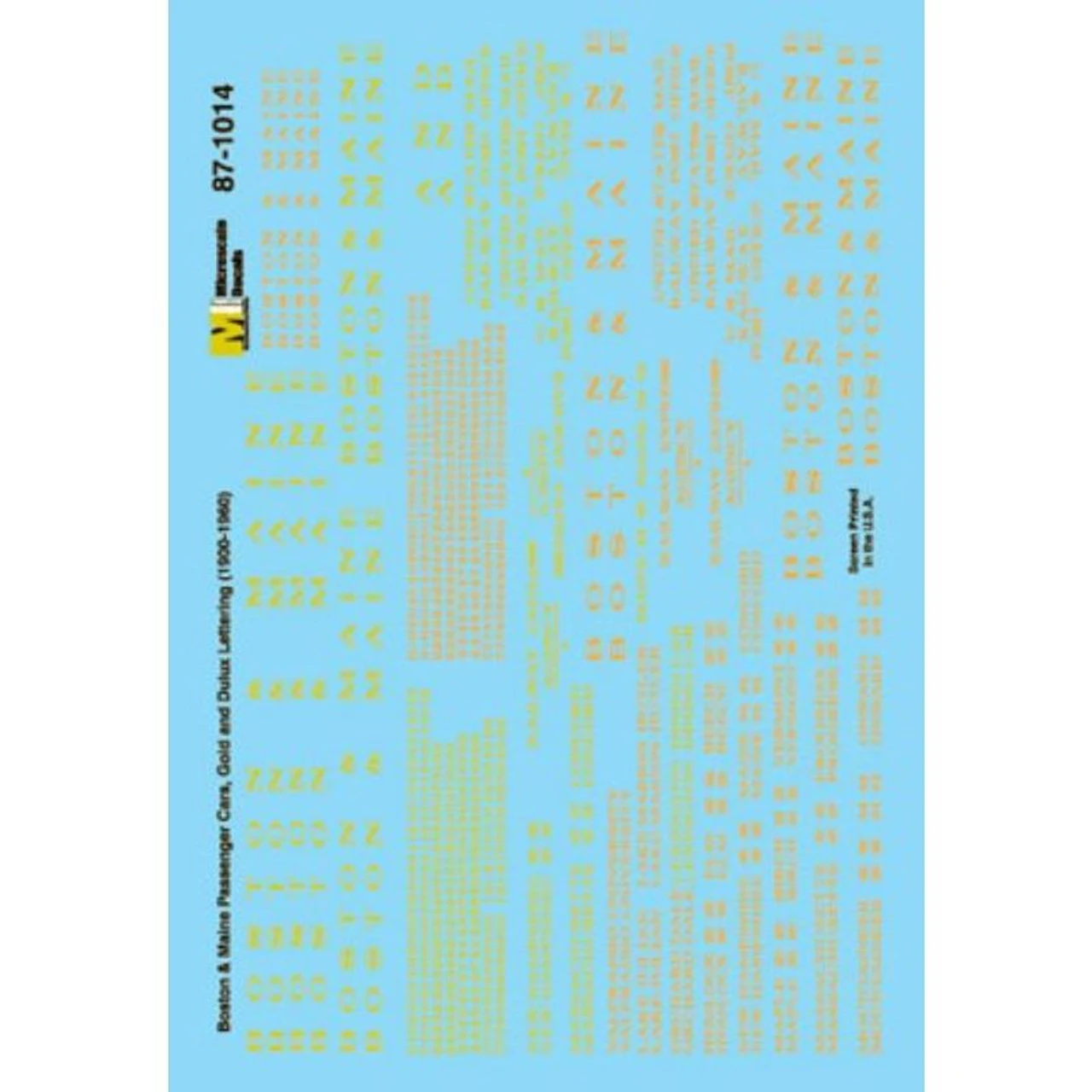 Sharp detail decals Microscale HO Scale Boston & Maine Passenger Cars (1900-1960)-Passenger Car – Gold Lettering