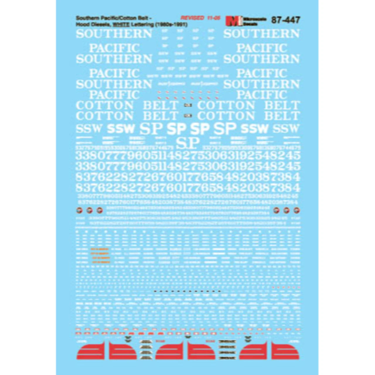 Southern Pacific / Cotton Belt Hood Diesels (1970s-1991)-Diesel – includes Red Wings and Cotton Belt Markings – Waterslide Decal – HO Scale Microscale HO Scale Southern Pacific / Cotton Belt Hood Diesels (1970s-1991) Decals