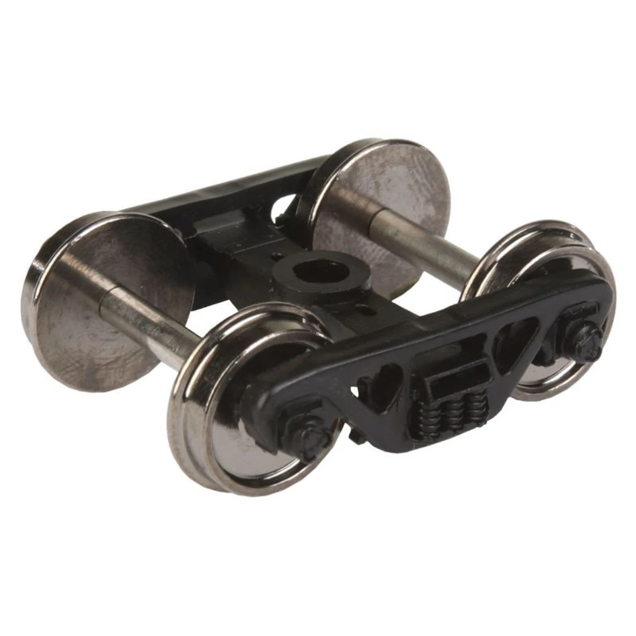 A later variation of this popular truck, equipped with 36″ wheels for 100-ton cars, and widely used today. An easy upgrade for new and older HO Scale freight cars, these WalthersProto trucks are molded in low-friction engineering plastic, fully assembled and ready to use with 36″ turned metal RP-25 wheels.