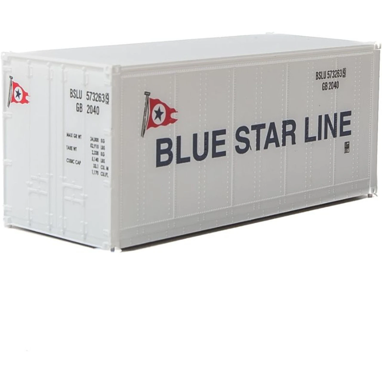 Expand container traffic on your 1960s and 70s era HO layout with this series of authentic models from SceneMaster, featuring: Standard end-door and right-side door versions as appropriate Authentic rivet, door latch and hinge details Colorful period schemes Perfect period loads for WalthersMainline G85 and 60′ Pullman-Standard VTTX container flatcars (each sold separately) Walthers HO Scale 20′ Smooth-Side Container – Ready to Run Road Name: Blue Star Line Road Number: Photo may not show actual road number . Please see description for actual road number