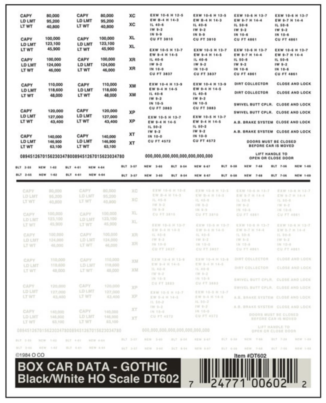 Box Car Data Gothic Black/White HO Scale DT602 One sheet 4″ x 5″ (10.1 cm x 12.7 cm)